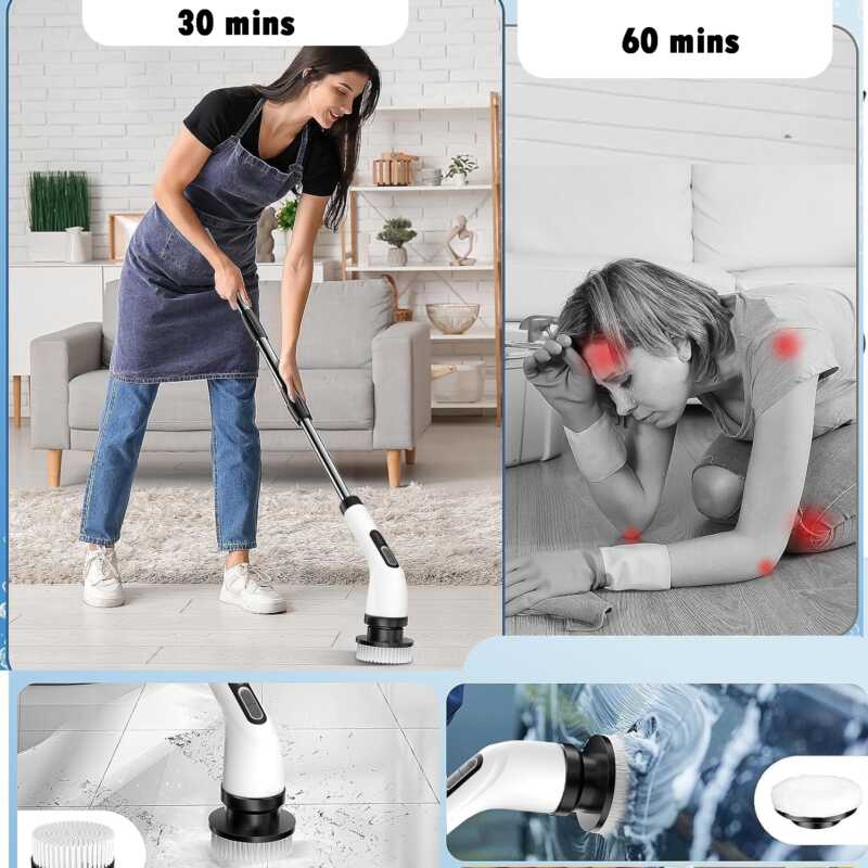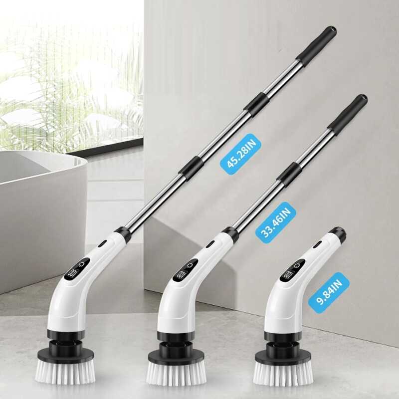 ¡Mis rodillas ya no sufren limpiando la bañera! El mango extensible llega a todos los rincones. Los 7 cabezales son ideales para cada área de la casa.