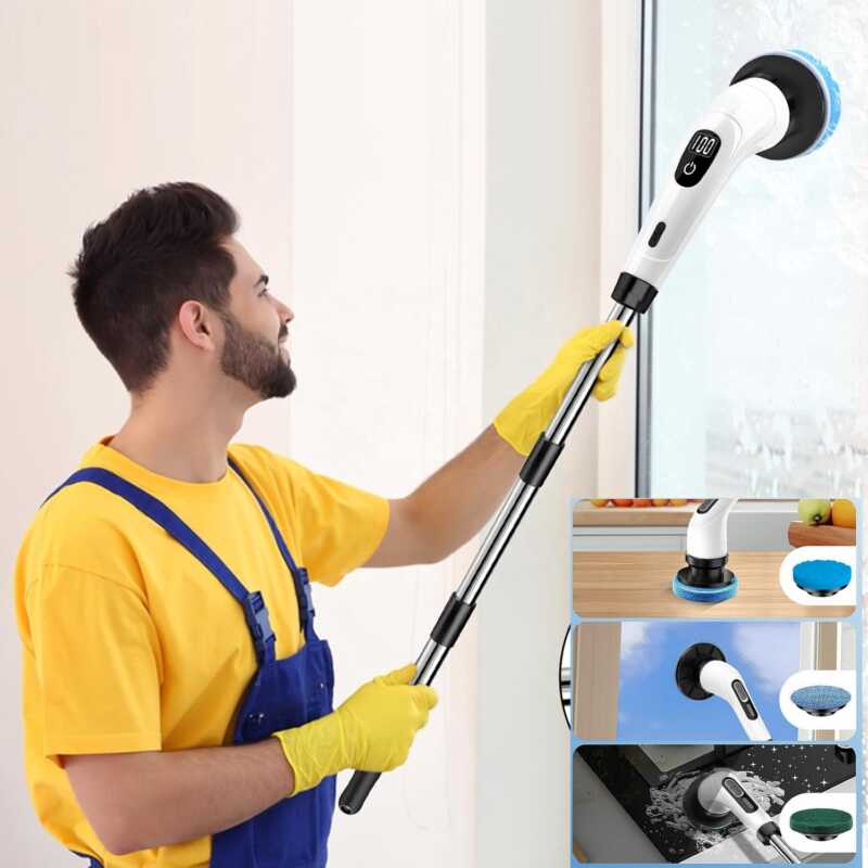 (7 valoraciones de clientes)Cepillo de Limpieza Eléctrico Rotativo – 7 Cabezales Intercambiables con Mango Extensible