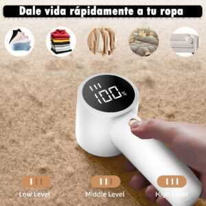(7 valoraciones de clientes)Depiladora de Bolitas Eléctrica para Ropa – Removedor de Pelusas Recargable con Pantalla LED