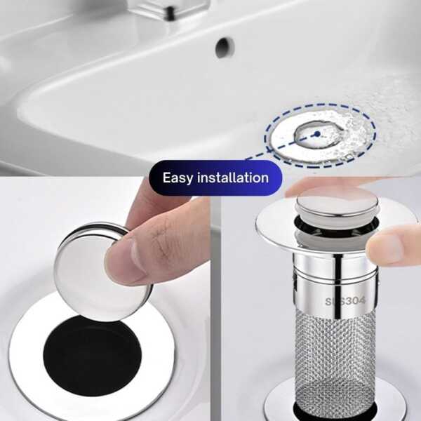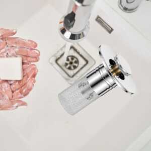 Filtro para Lavamanos con Botón – Atrapa Pelos y Residuos