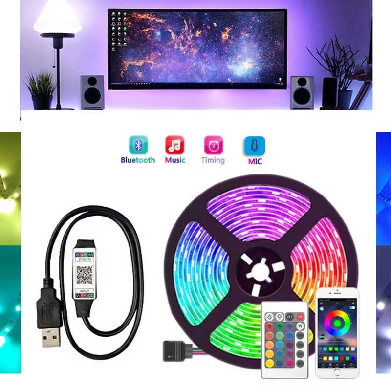 (7 valoraciones de clientes)7 valoraciones en Tira LED Inteligente 5V 5050 RGB – 1m – Control por Bluetooth, WiFi y Alexa