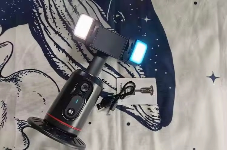 (7 valoraciones de clientes)Trípode con Seguimiento Facial Automático 360° – Soporte para Teléfono con Luces LED